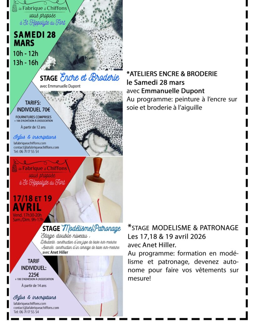 Elle donne des cours de couture tous publics à l’association depuis avril 2023 et propose également plusieurs modules de stages chapeaux.